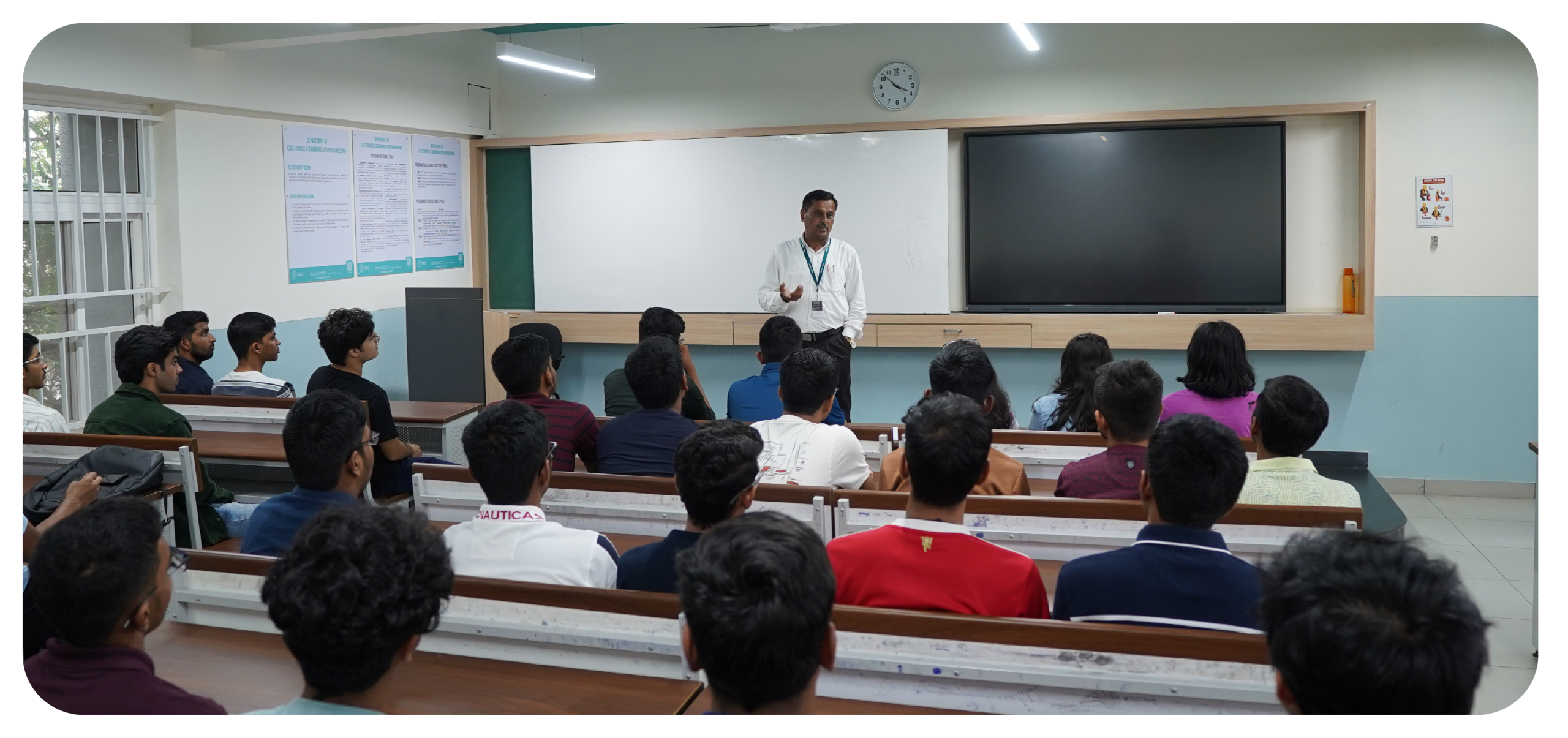 The M. Tech. in Communication Systems (CS) programme, established in 2006, is a full-time, four-semester postgraduate programme with strong infrastructure and a consistent 15:1 student-teacher ratio. The curriculum, designed with industry feedback, focuses on interdisciplinary research, employability, innovation and includes mandatory projects and internships. Students are encouraged in R&D, consultancy and entrepreneurship. The department boasts a VTU-affiliated R&D centre established in 2004, attracting grants from organisations like DRDO and ISRO for diverse research topics and currently has 45 Ph.D. students.