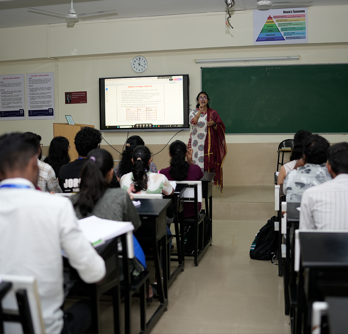 The B.E. in Electrical and Electronics Engineering (EEE) programme, affiliated with Visvesvaraya Technological University (VTU), provides a solid foundation in core electrical sciences, complemented by modern electronics and emerging technologies. Designed to meet the evolving needs of industry, the programme equips students with practical skills through advanced laboratories and industry collaborations.